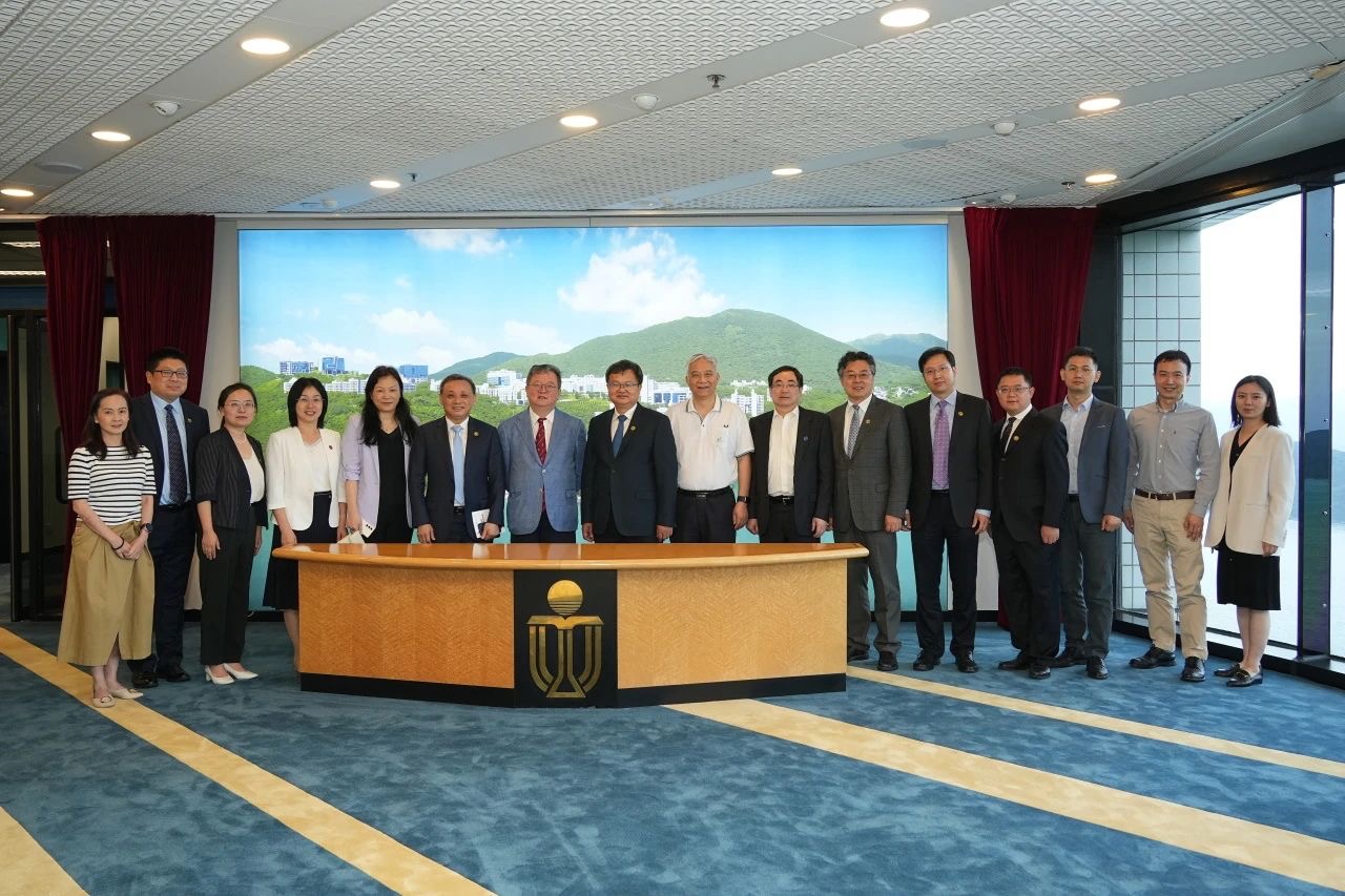 武汉大学校长张平文(左八)率代表团访问港科大,与港科大首席副校长郭毅可(左七)会面交流